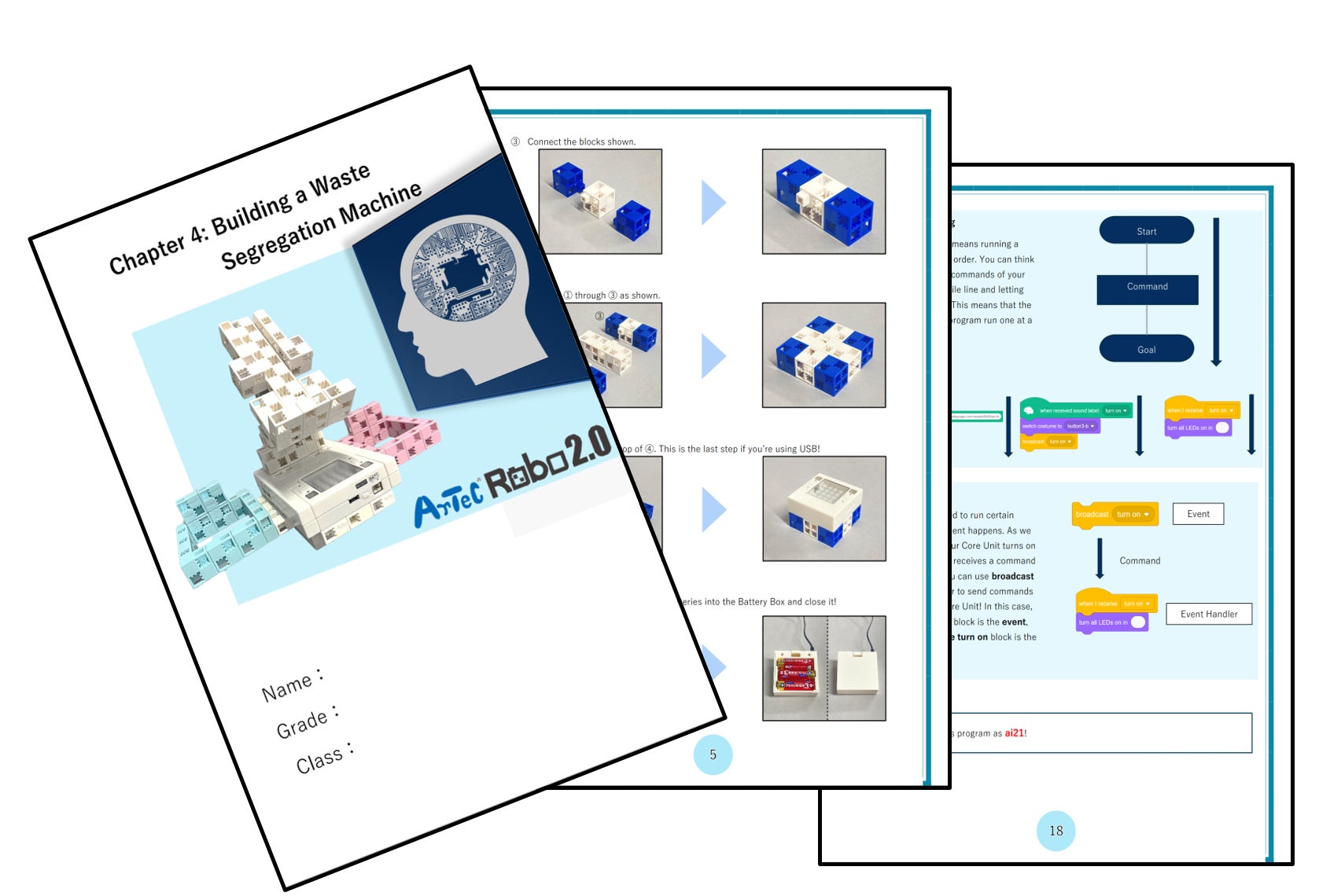 AIの基礎から、AIを利用した本格的なロボットプログラミングまで、7種類のロボットをつくりながら11のステップで、楽しく段階的に新しい知識を身につけられます。