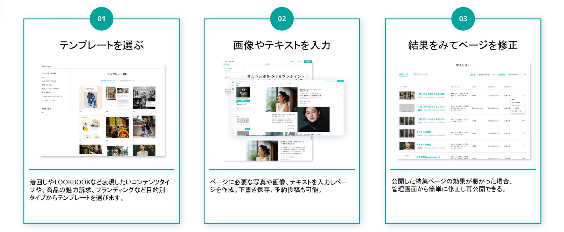 6,000件以上の制作実績を活かして開発。たったの3ステップで "魅力的な特集ページ" を制作可能に!