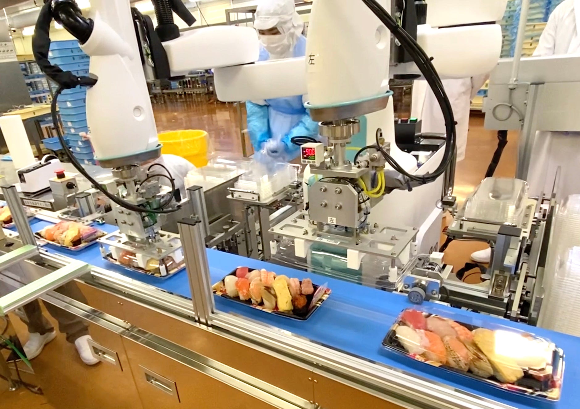 新型コロナウイルス流行の影響を受けて、飲食店ではテイクアウトの需要が高まっています。京樽では、船橋市にあるセントラルキッチンにて製造を行っています。寿司は鮮度や衛生管理を徹底する必要があり、スピーディーな製造が求められます。また、テイクアウト専門店では複数サイズの寿司容器を扱うことから、専用機では段取り替えに対応ができず、自動化が進まないという現状がありました。当社はこれまでロボットではできなかった飲食店の調理工程や食品工場の製造工程を自動化するロボットを開発、多数実装しています。その経験をふまえて寿司容器の蓋閉ロボットを開発しました。