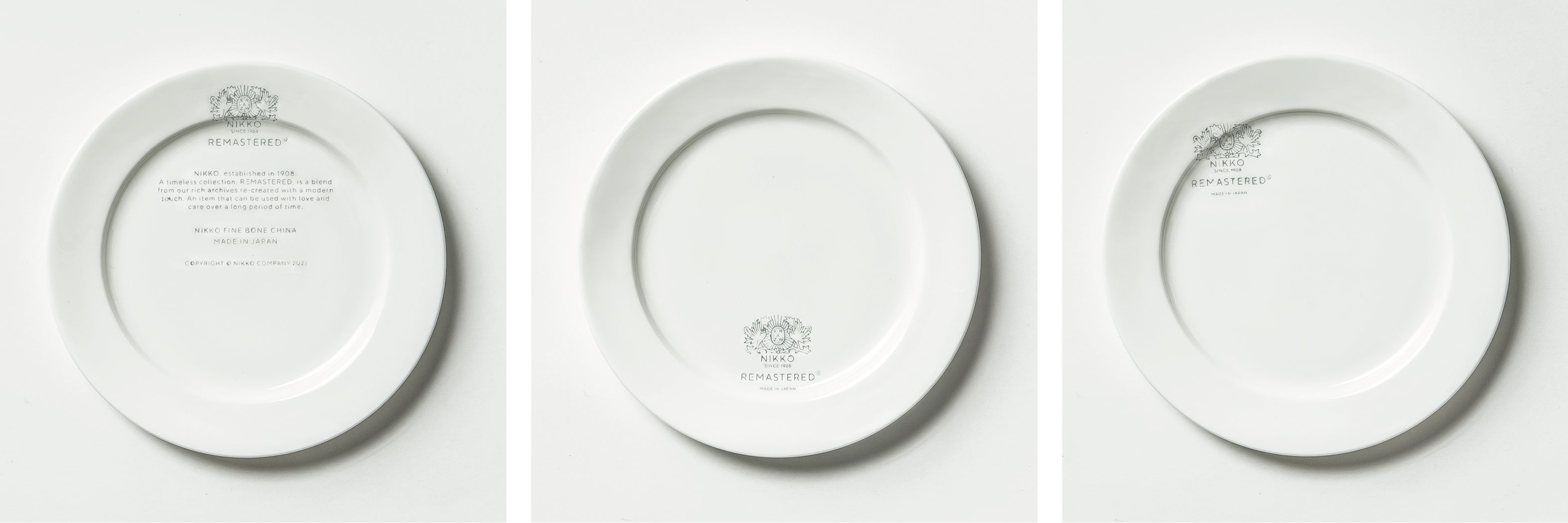 REMASTEREDは、創業100年以上の歴史を持つNIKKOが、これまで生み出してきた洋食器のアーカイブの中から、いつの時代でも使い続けることのできるアイテムを選抜した新しいコレクションです。純白で丈夫なニッコーファインボーンチャイナのバックスタンプには、伝統的な「ダブルフェニックス」が蘇りました。
