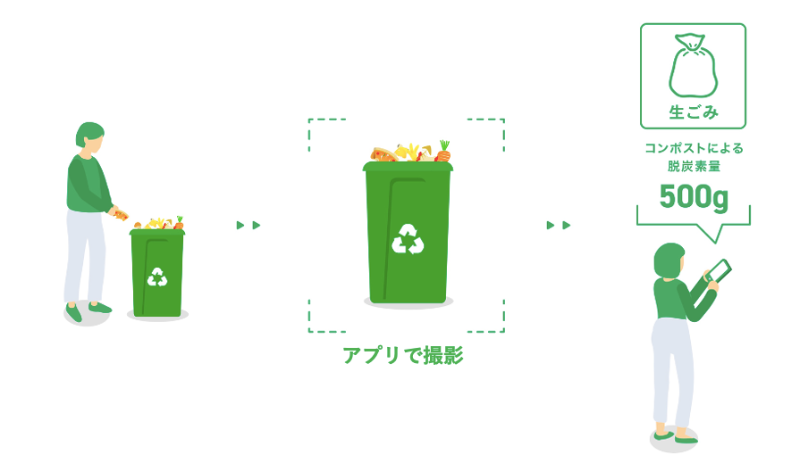 しています。自動車が市民の足として代え難い現状で脱炭素活動を促すべく、2023年11月からコンポストによる脱炭素計測機能を新たに用い、市民のライフスタイルの中で脱炭素を定着させます。生ごみは水分を含むため、焼却処理ではより多くのCO2を排出すると言われています。生ごみをコンポストで堆肥化させ、可燃ごみの量を減らすことで、CO2排出量の削減を目指します。