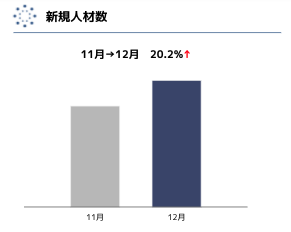 - 新規人材数が前月比20%以上増加しました。