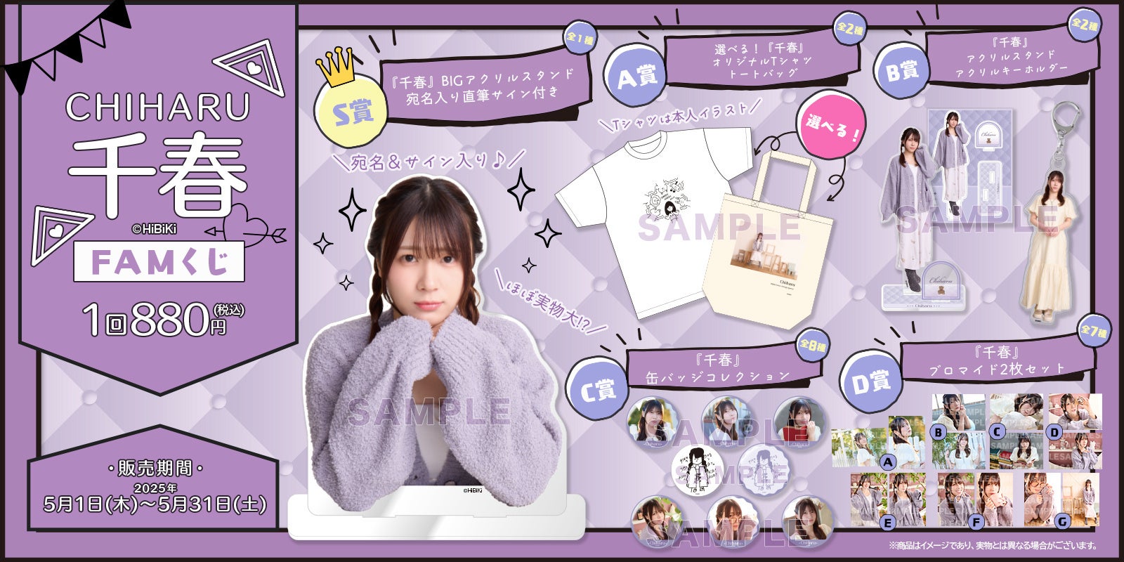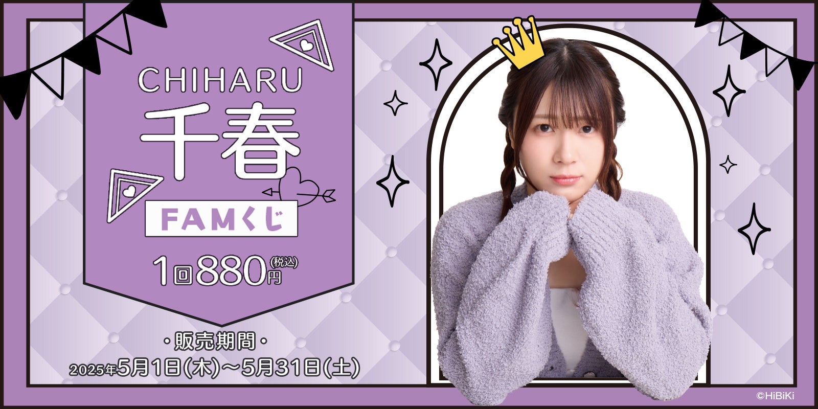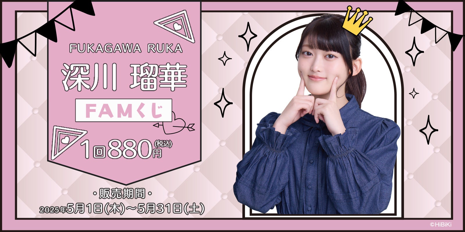 ファンエンゲージメントプラットフォーム「FAM」の企画・開発・運用を手掛ける株式会社Nagisa(本社:東京都渋谷区、代表取締役社長:横山佳幸)は、オンラインくじサービス「FAMくじオンライン」において、<『深川瑠華』FAMくじ>、<『渡瀬結月』FAMくじ>、<『千春』FAMくじ>を2025年5月1日(木)15:00より販売開始いたします。