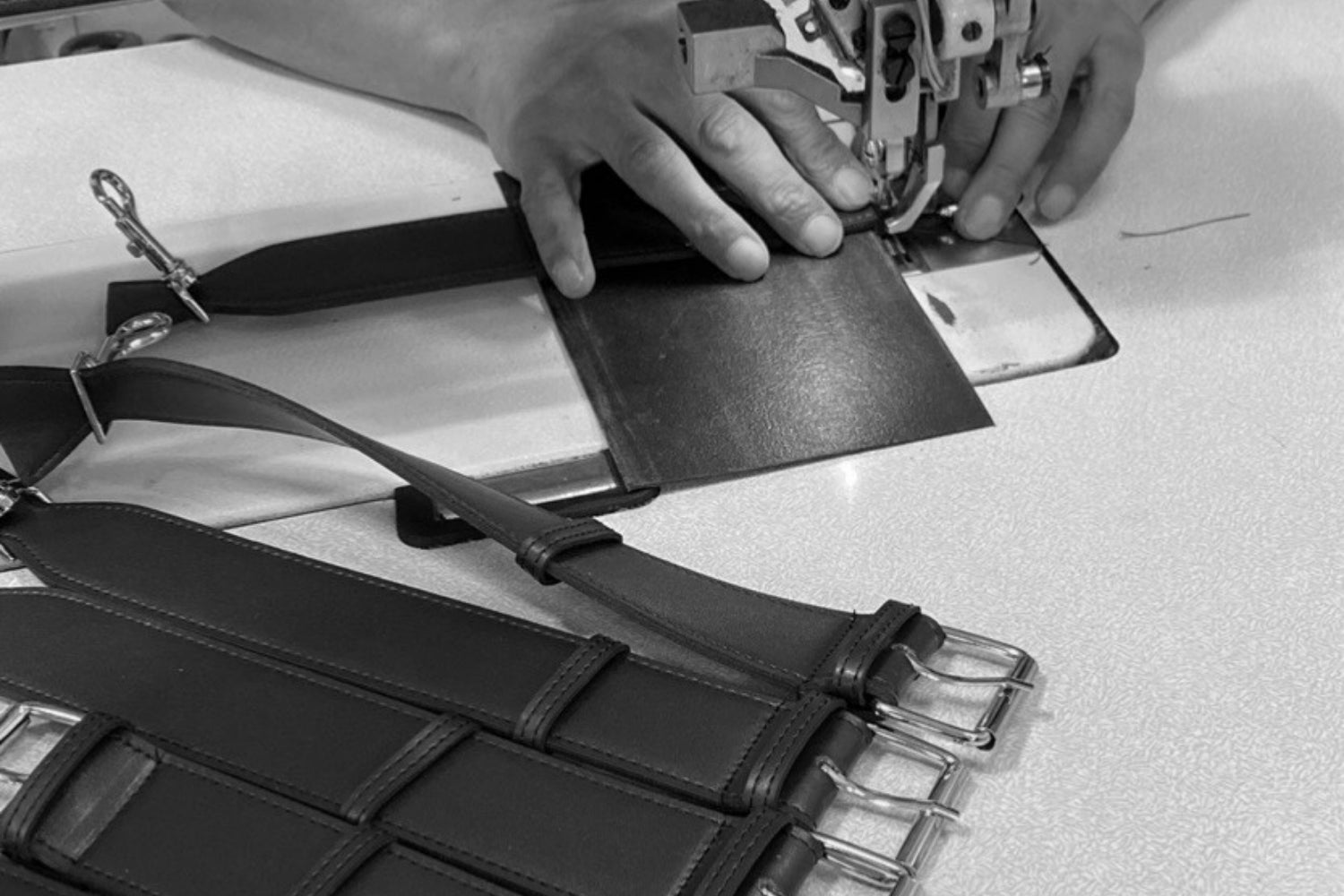 全てのバッグの、切り目とベルトに職人が三度にわたり、塗装と乾かしを行いコーティングを施します。