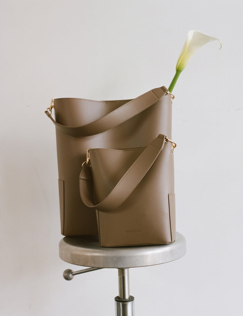 今回のリニューアルを機に、定番バッグ"Bucket bag"と"Petit bucket bag"に新色"graige"が登場。