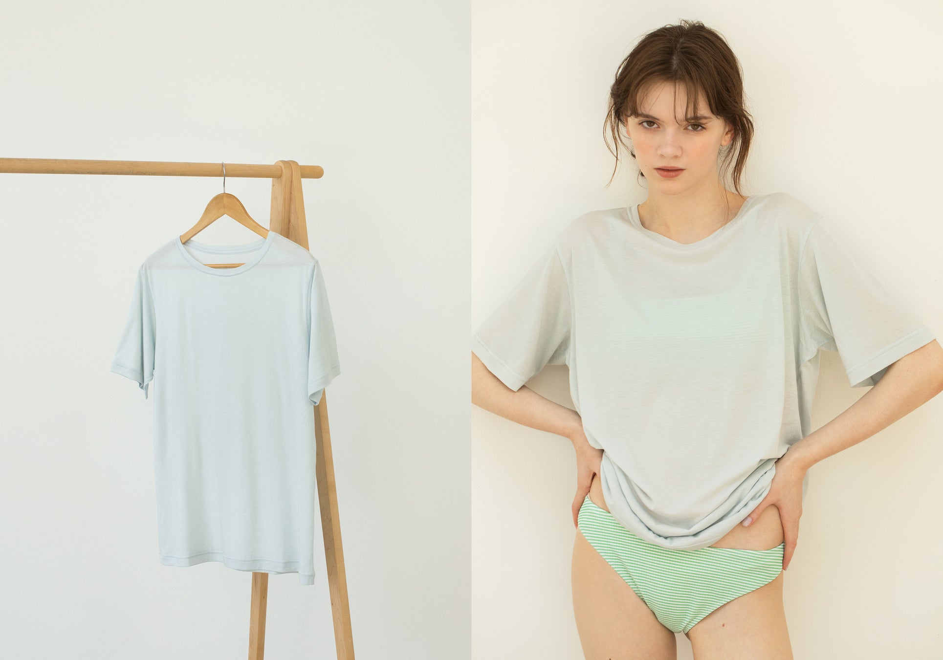 生地は、吸湿性と放湿性に優れたブナの木由来の素材を採用。染めた後にトリートメントを揉み込むことで、肌触りの良い生地に仕上げました。