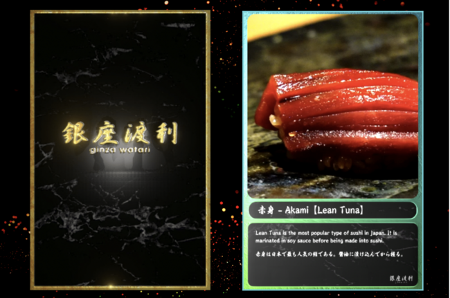 「SUSHI TOP SHOT」は江戸前寿司の包丁さばきなど、鮨職人の技をNFT化した作品です。「SUSHI TOP SHOT」をプロデュースした板前の渡邉哲也シェフは渋谷に実店舗「銀座渡利」を構えています。