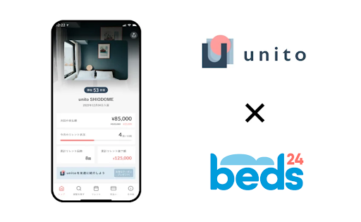 帰らない日は家賃がかからない部屋を提供するunito、beds24との接続開始。手動対応不要の不動産運営DXを加速
