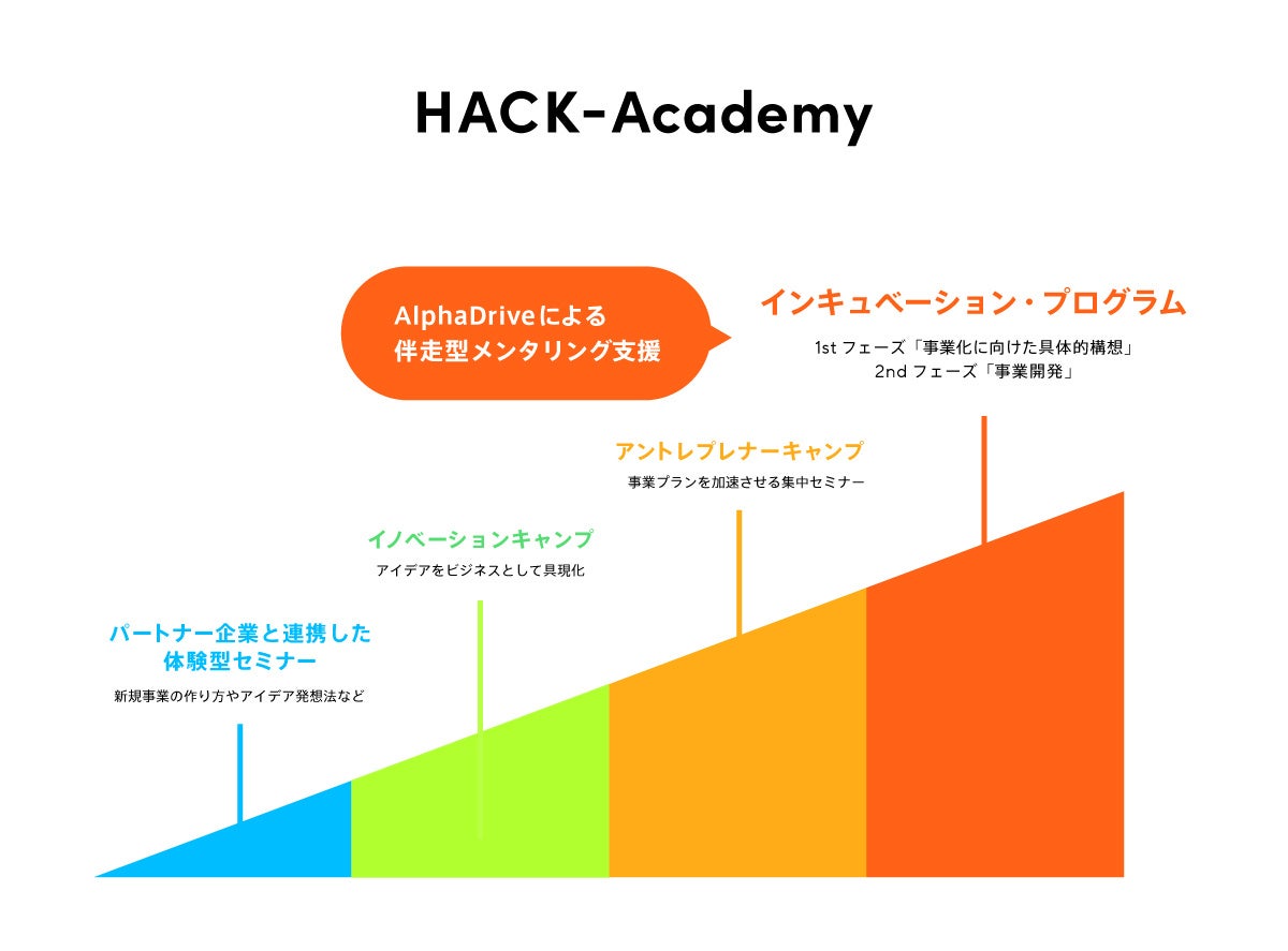 株式会社アルファドライブ(代表取締役社長 兼 CEO 麻生要一、以下、AlphaDrive)は、関西大学主催のアントレプレナーシップ醸成プログラム「HACK-Academy」のアドバイザー支援業務を受託しました。AlphaDriveが培ってきた体系的な事業開発のノウハウで起業を志す大学生を支援するだけでなく、関西圏におけるスタートアップ創出への貢献を目指します。
