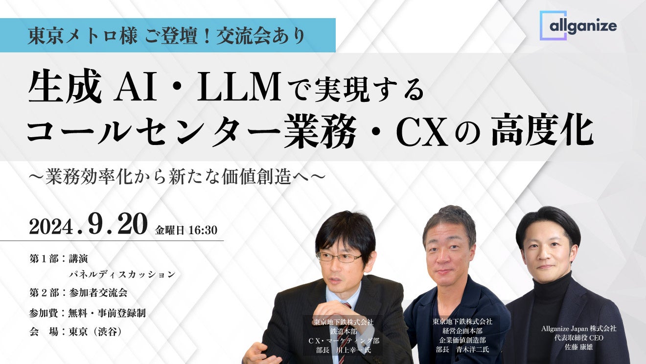 【東京メトロ様ご登壇】『生成AI・LLMで実現するコールセンター業務・CXの高度化』、9月20日 開催決定。東京にて、参加型イベントを実施