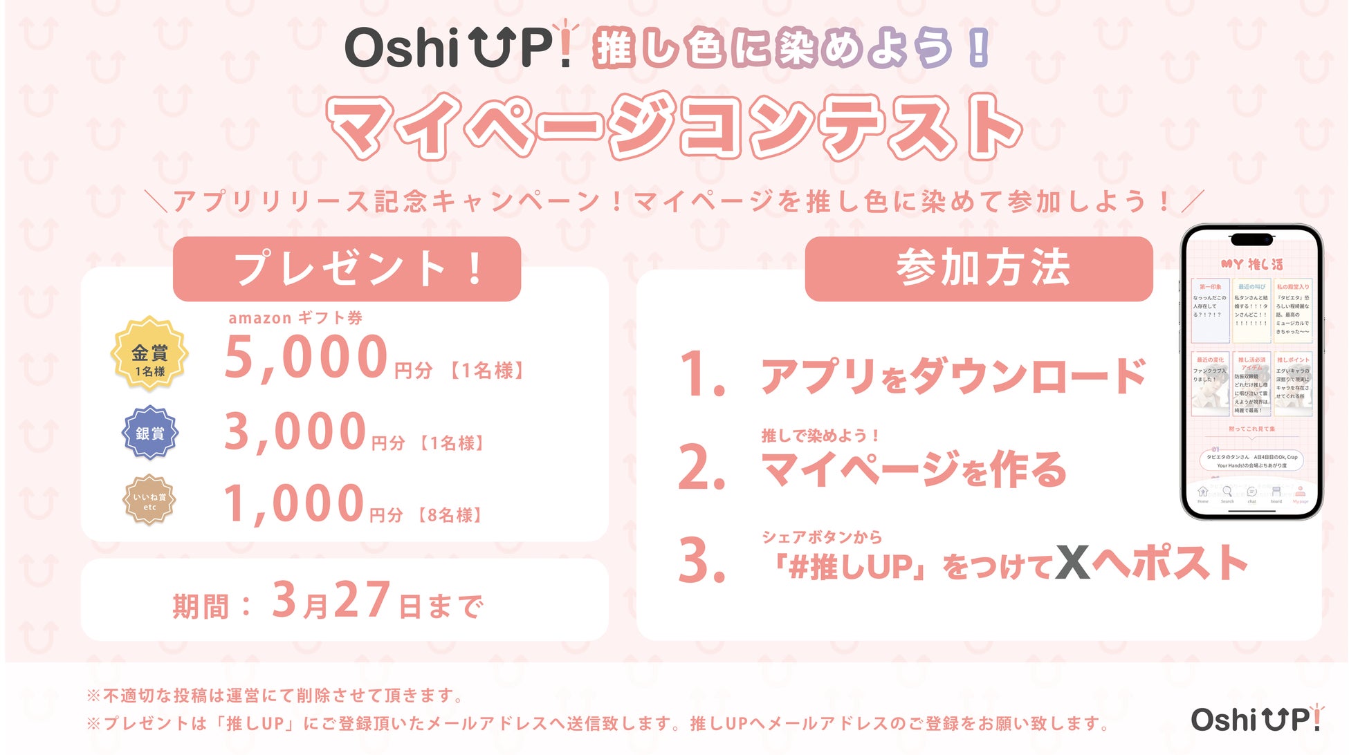 推し活アプリ「Oshi UP!(推しアップ)」リリースを記念して、「推し色に染めようマイページコンテスト」開催!