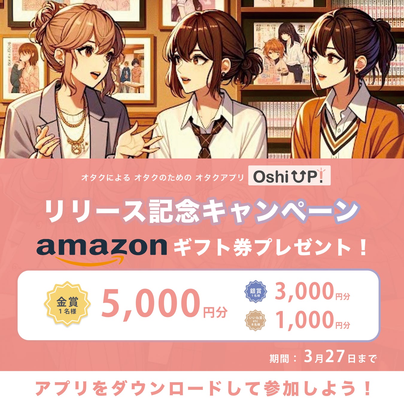 シースリーレーヴ株式会社(本社:東京都港区、代表取締役社長:空野正輝)は、推し活を全力でサポートするサービス「Oshi UP!」のβ版を2024年3月12日(火)にリリース致しました。リリース記念キャンペーンとして、推し色にカスタムしたり、推しポイントや魅力などを自由にレイアウトすることができるマイページを推し色に染めてキャンペーンに参加すると、アマゾンギフト券最大5000円がもらえる「推し色に染めようマイページコンテスト」を実施します。