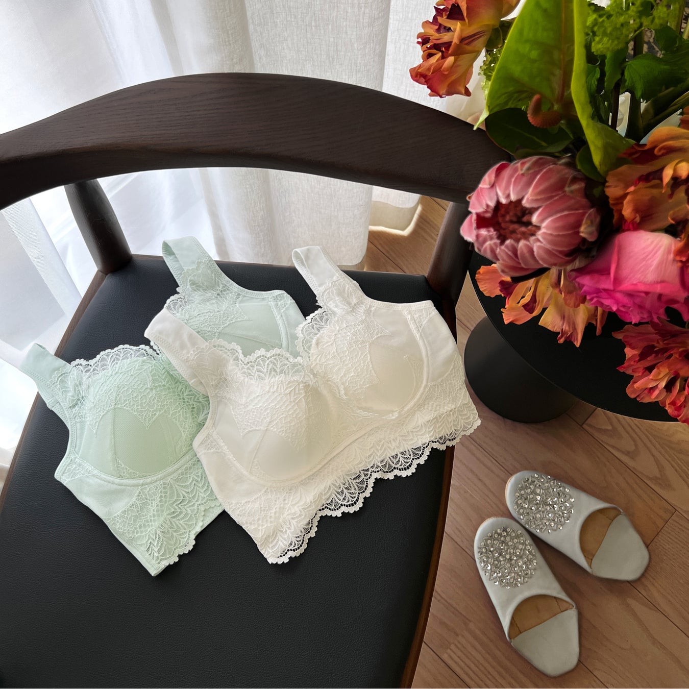 ”楽して美胸メイク”したい方に。24時間着用OK!昼も夜も美胸をキープする大人気ノンワイヤーブラに、華やかなレースタイプが新登場。