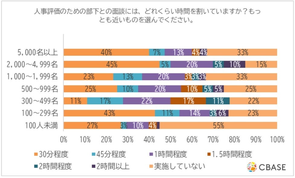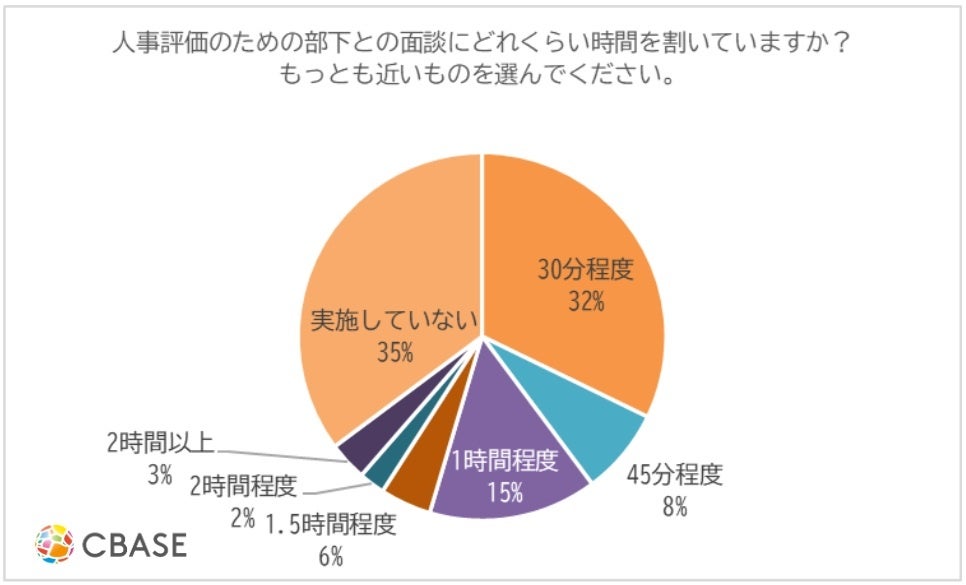 設問:人事評価のための部下との面談には、どれくらい時間を割いていますか?もっとも近いものを選んでください。※複数回にわたり面談を実施する場合、合計時間を選んでください