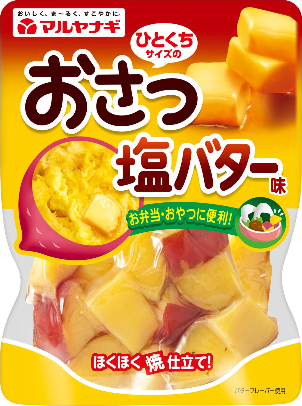 マルヤナギの袋入り惣菜『ひとくちサイズのおかず』シリーズは、素材を活かした味わい、おかずやお弁当にも使いやすいサイズ感、常温でストックでき、開封してそのまま食べられる簡便性が特徴の、袋入り惣菜シリーズです。お弁当やお子さまのおやつにおすすめの“甘煮”タイプは、素材の甘みを活かした「ひとくちサイズのさつまいも」「しっとり甘栗」「おさつ塩バター」の3種をラインナップ、また、おかずやおつまみにおすすめの“おかず”タイプは、素材のうま味を活かした「イカ味のさといも“イカさと”」、「バター味のじゃがいも“じゃがバタ”」の2種をラインナップし、お客様にご好評をいただいております。この度、同シリーズの“おかず”タイプとして、人気のほくほくじゃがいもにベーコンのコクとうま味をプラスした、おつまみにぴったりのアイテムを新発売。お客様が好みや用途に合わせてストックできる6種の多彩なラインナップで、シリーズをさらに強化いたします。