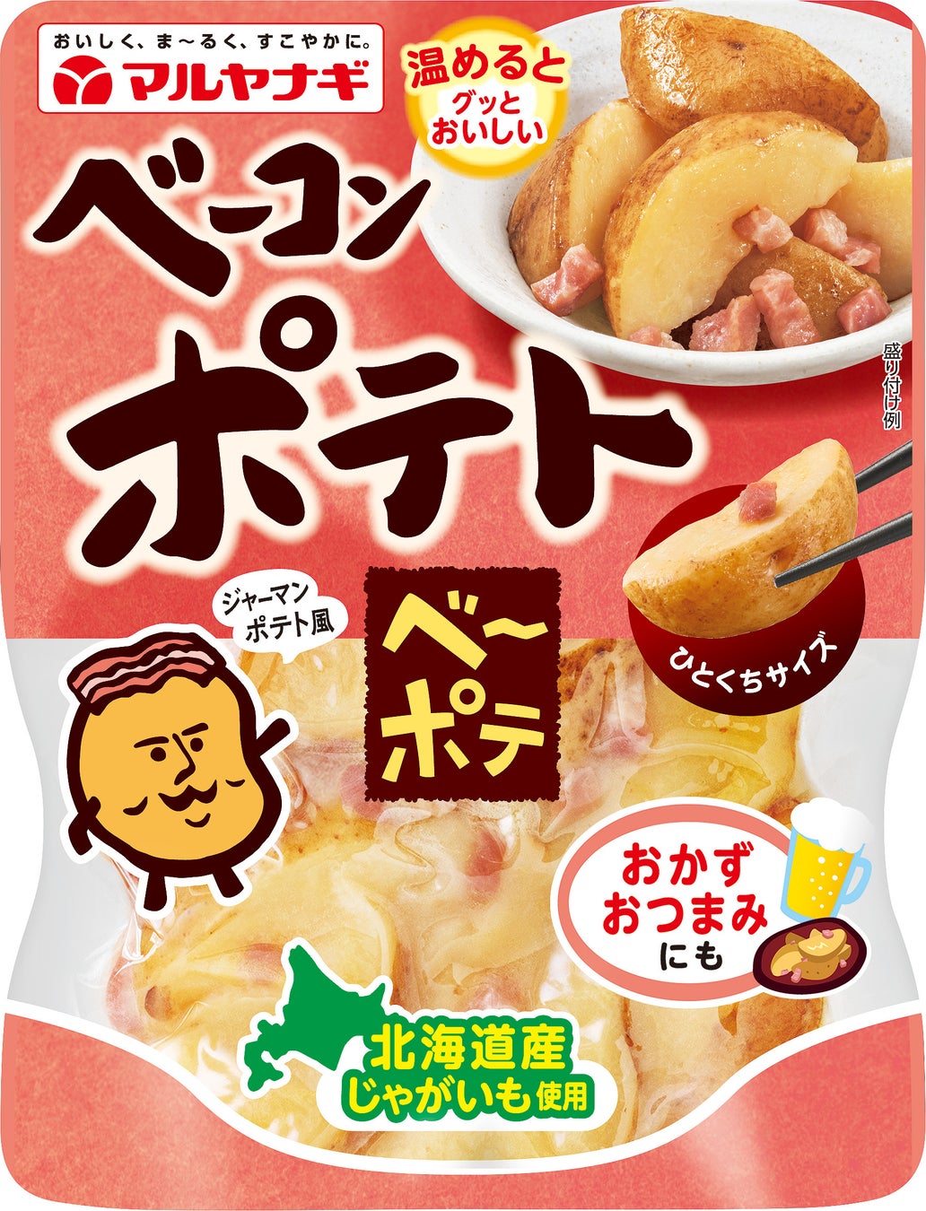 蒸し豆・佃煮・煮豆のマルヤナギブランドを展開する株式会社マルヤナギ小倉屋(神戸市東灘区 代表取締役社長:柳本勇治)は、袋入り惣菜「ひとくちサイズのおかず」シリーズの新商品として、「ベーコンポテト “ベーポテ”」を2024年8月20日(火)より順次全国のスーパー・小売店で販売いたします。同シリーズ「イカ味のさといも“イカさと”」、「バター味のじゃがいも“じゃがバタ”」に続く新アイテムを発売することで、食事の一品やお酒のおつまみとして常温でストックできる、おかずタイプの袋入り惣菜のラインナップをさらに充実させ、お客様に選べる楽しさをご提供してまいります。