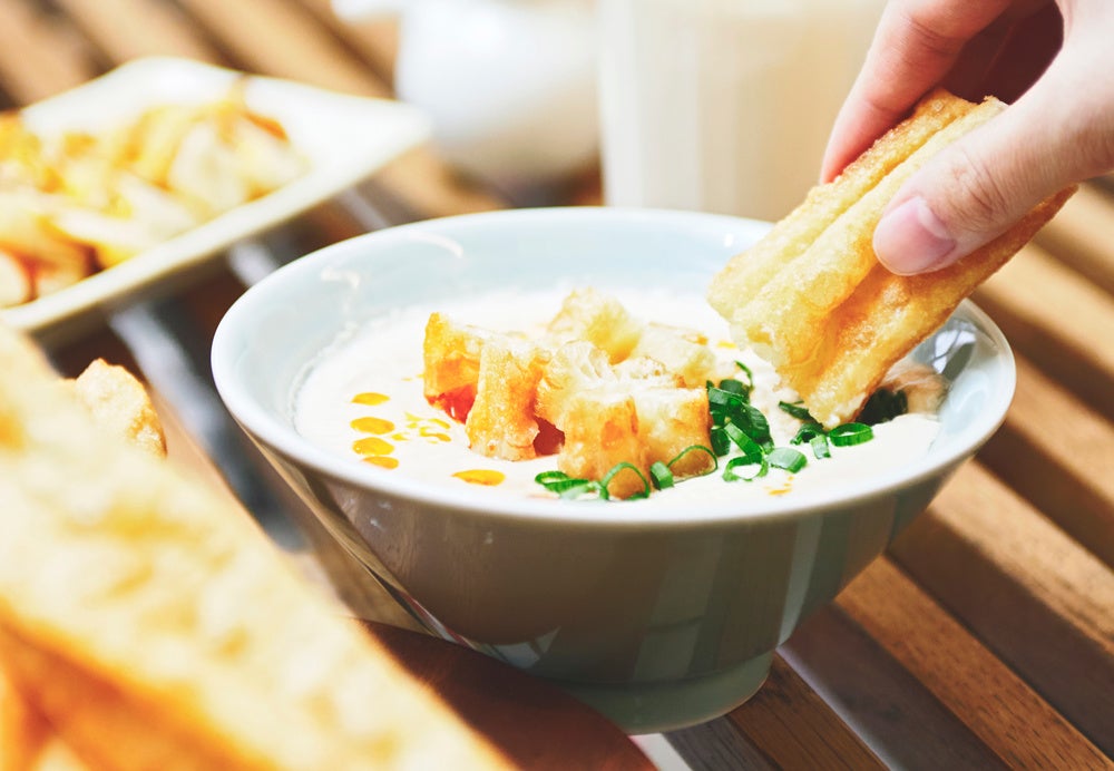 旨味を凝縮した豆乳に桜エビやザーサイ、葱といった具材に加え、揚げたての油條(揚げパン)が入った、ヘルシーながらも満足感のある一杯です。