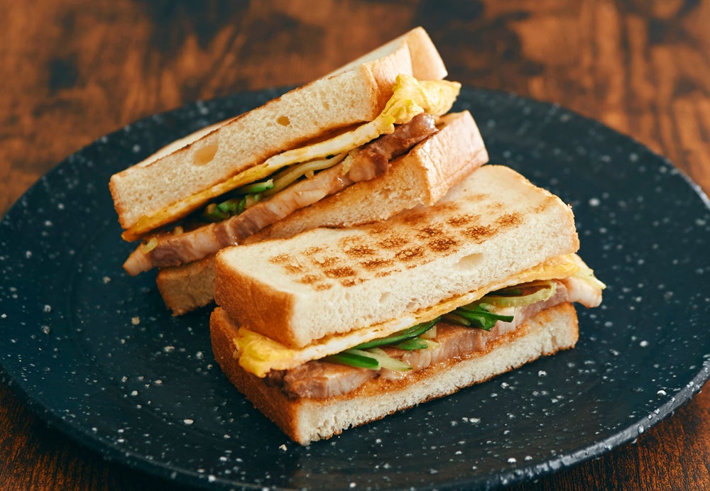 台湾朝食の新定番。炭火で香ばしく焼いたトーストは、外はカリッ、中はしっとり。ほんのり甘い台湾マヨネーズと卵、甘辛く味付けしたお肉をサンド。サクふわ食感を楽しんで。