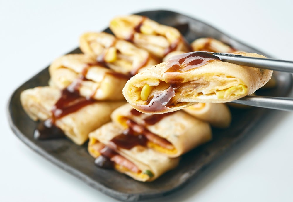 小麦粉で作った生地を薄く伸ばしながら鉄板で焼き様々なトッピングを加えた台湾式クレープ。モチモチ生地にシンプルかつ豊富なトッピングで、毎日食べても飽きのこない味わい。