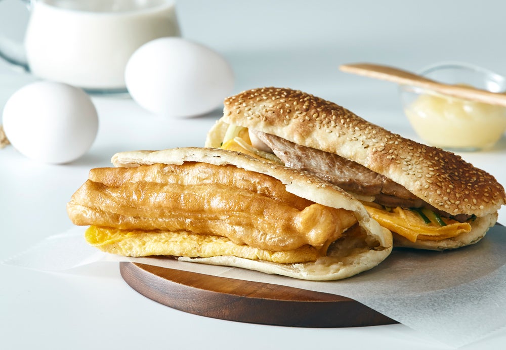 油條(揚げパン)や卵、ハム、野菜など様々な具材をサンド食べるのも◎焼餅の間に油條を挟んだ「焼餅油條」は台湾人が愛するもっともポピュラーな食べ方。ボリューミーで食べ応え抜群。