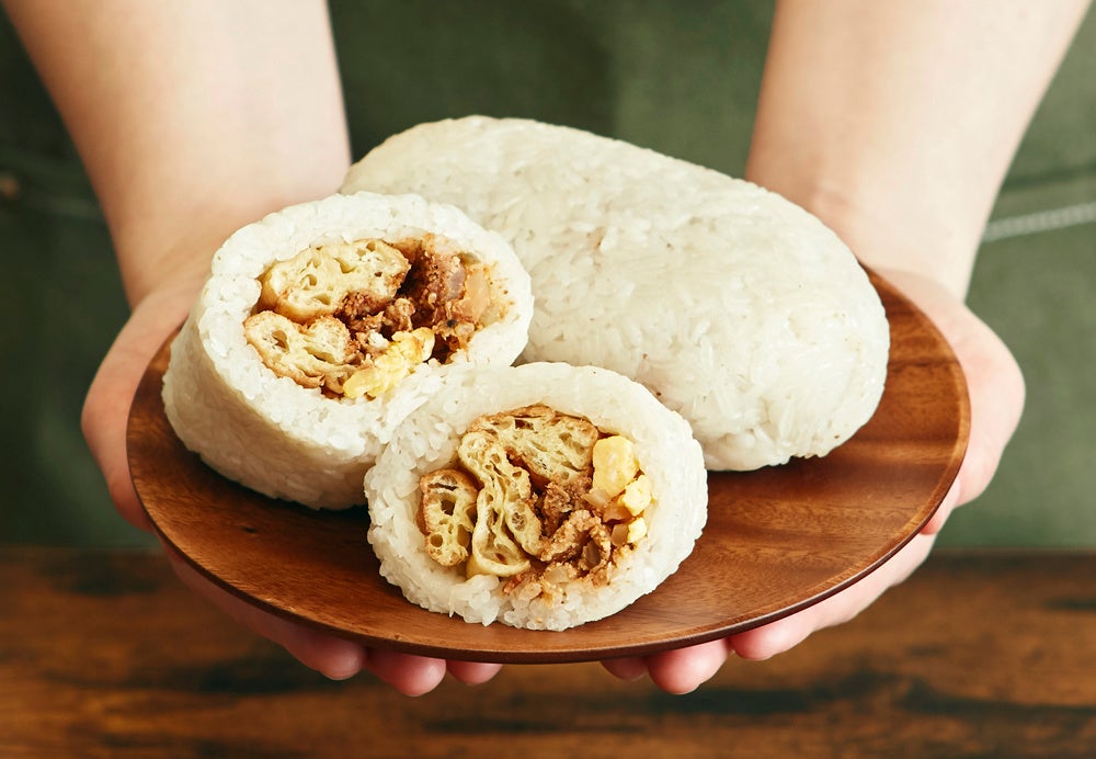 台湾の朝のエネルギーチャージといえば、見た目にも新しい大きな俵型のおにぎり。噛むたびに顔を出す油條(揚げパン)や肉鬆(豚肉でんぶ)、菜脯(台湾式漬物)などの具材とふんわり香るもち米との相性は抜群。大満足の朝ごはん。