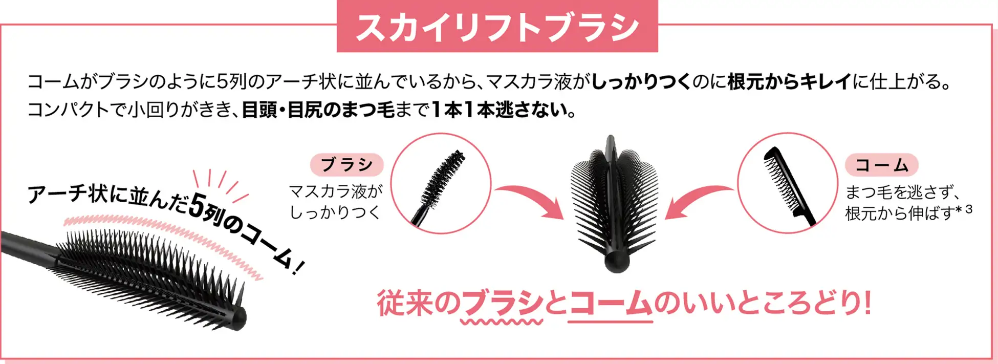スカイリフトブラシならマスカラ液がたっぷり塗布でき、