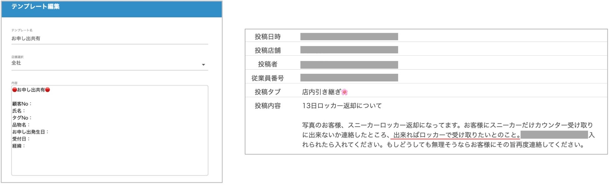 また、情報漏えい防止のため、プライベートチャットツールの利用を禁止し、仕事専用の「はたLuck」に集約したうえで、安心して簡単に受発信できるようにテンプレートも用意して情報の統一化を行なっています。