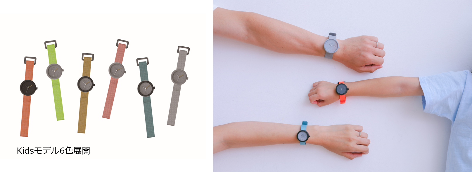 Kidsモデルは、時計に慣れていなくても着けやすいようにベルクロ仕様にして、時間を読みやすいようにダイヤル表示に。長針には色付けをして、付属の小冊子「とけいのよみかた」と併せて、子どもが時間について学びやすくするなどの工夫を施しました。また、交換用ベルト、ストラップ、ギフトパックもオプションとして展開しています。