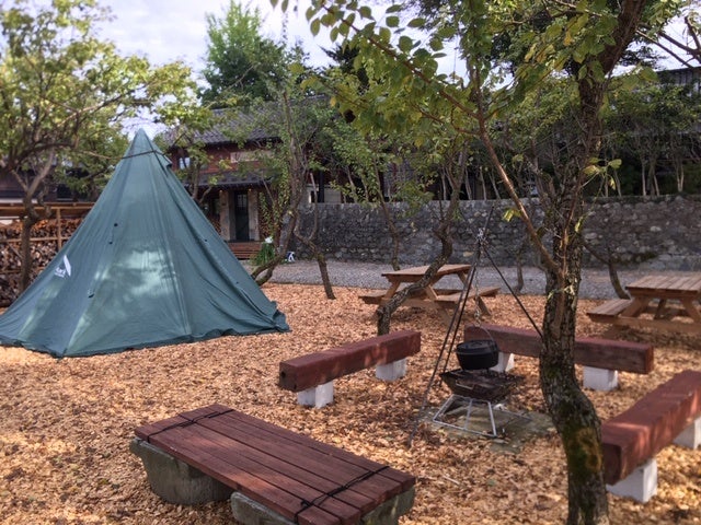 ろあんのグランピングは、1日1組限定で、緑あふれる野外のグランピング会場をひとり占めすることが可能。また、ティピやハンモックも自由に使える充実の設備に加え、プランにはホテルの客室も付いているため、お風呂もトイレも心配ありません。食事は、洋食とBBQ、持込から選べぶことができ、思い思いのキャンプ料理を楽しめます。