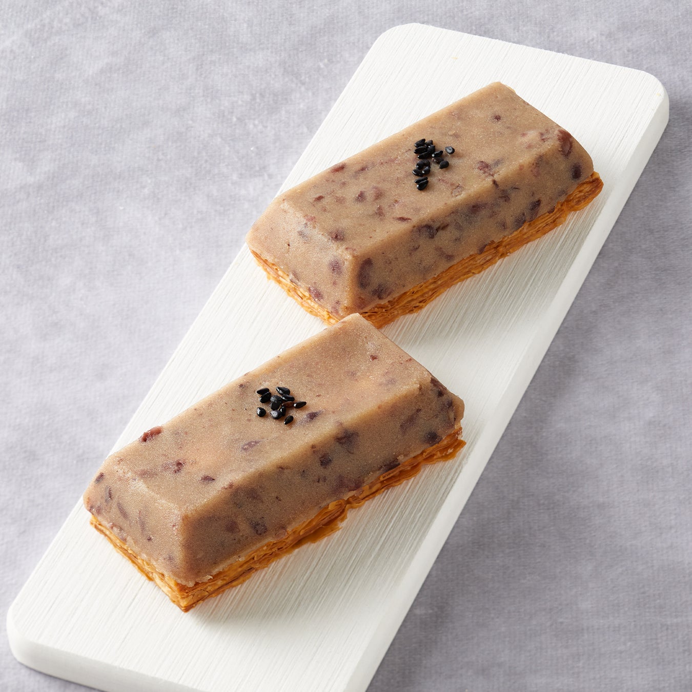 塩気の効いたふんわりホイップバターを、粒あんと合わせた生スイートポテトで包み、バター香るパイ生地と合わ
