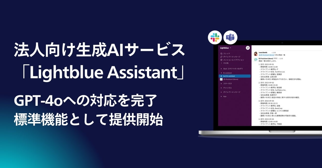 法人向けAIサービスLightblue Assistant、最新モデル「GPT-4o」への対応を完了し標準機能として提供開始