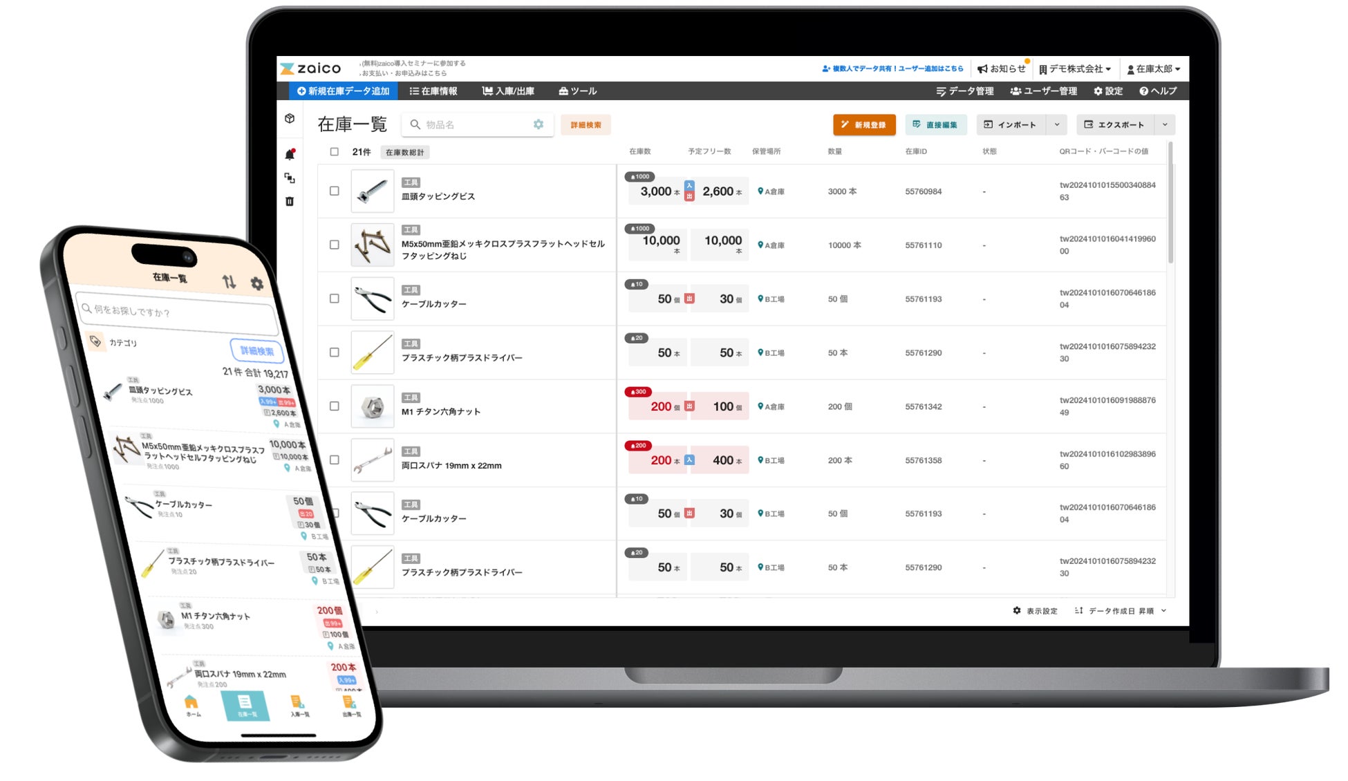 「モノの情報を集め、整え、提供することで、社会の効率を良くする」をミッションに、2016年よりクラウド在庫管理システムzaicoを開発・提供。「在庫管理をする人」が必要なくなる未来を目指し、お客様の声に愚直に向き合いながら、画像認識やIoTなど最新技術を用いて在庫管理の省人化・自動化に取り組んでいます。