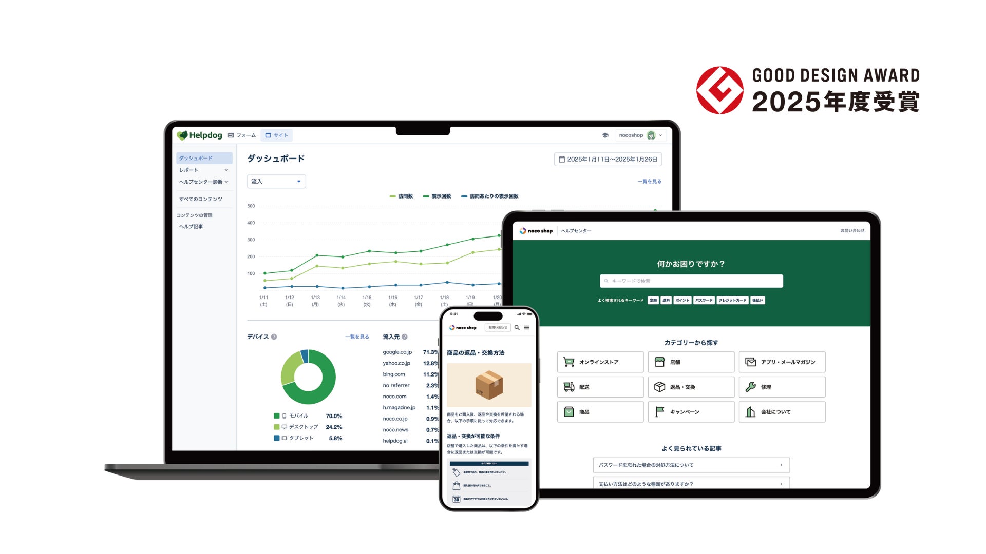 セルフサポートシステム「ヘルプドッグ」が、公益財団法人日本デザイン振興会主催の「2025年度グッドデザイン賞」を受賞しました。本受賞は、企業のサポート現場における課題解決を支援し、顧客の自己解決体験を高めるデザインが評価されたものです。