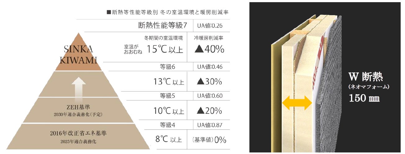 (1)屋根・壁・基礎・窓の断熱仕様強化により、国内最高水準となる「断熱等性能等級7(最高等級)※1」に対応
