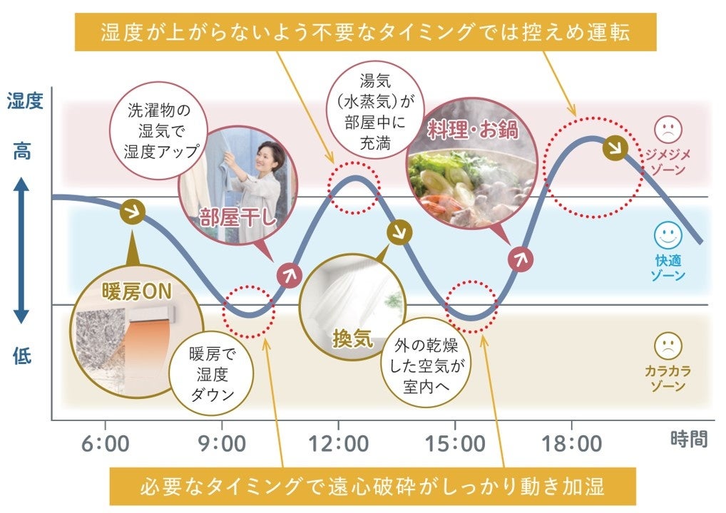 (3)家中の湿度を40~60%にキープする「加湿システム※3」を搭載し、空気質にこだわった極上の住みごこち