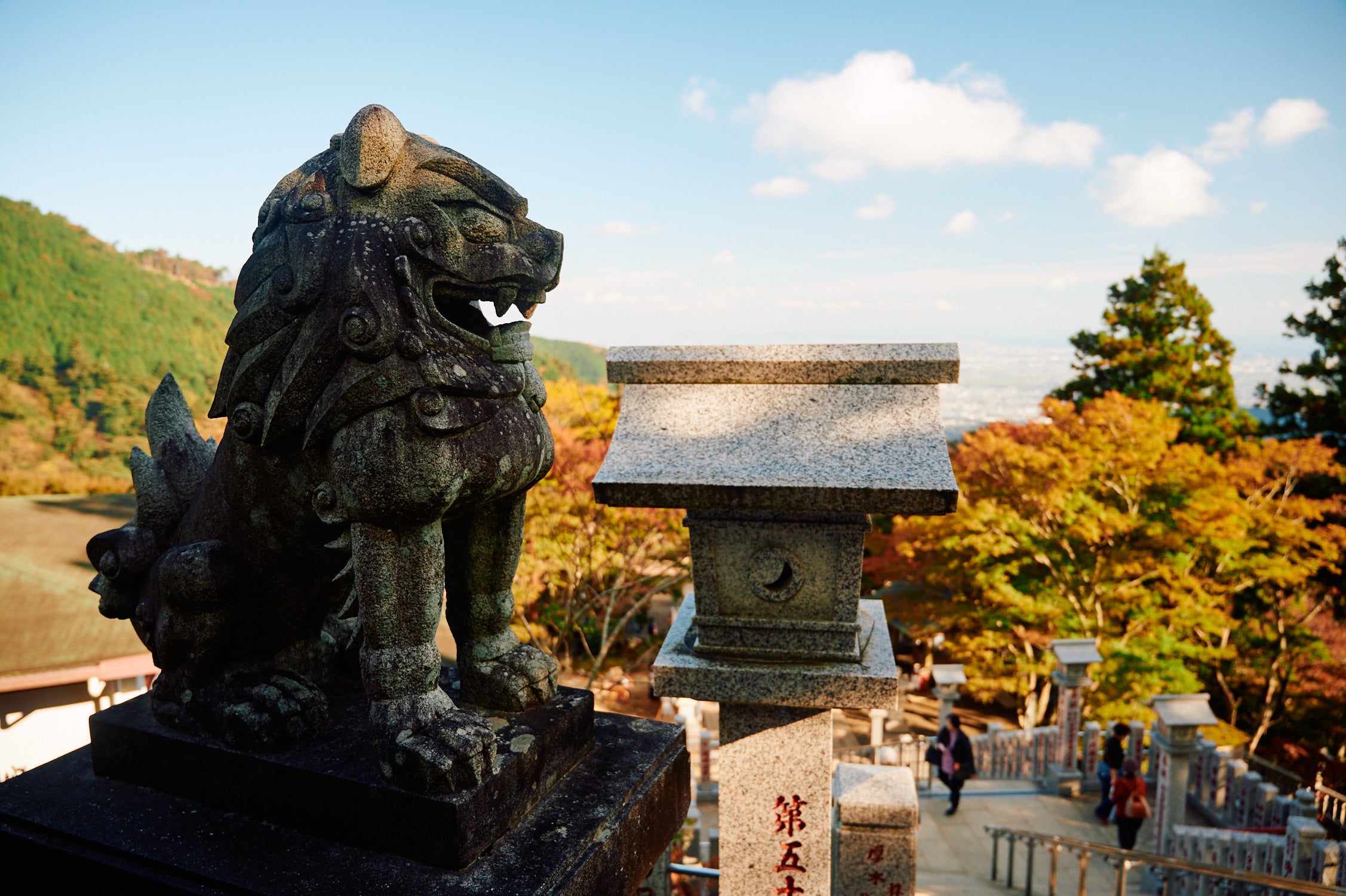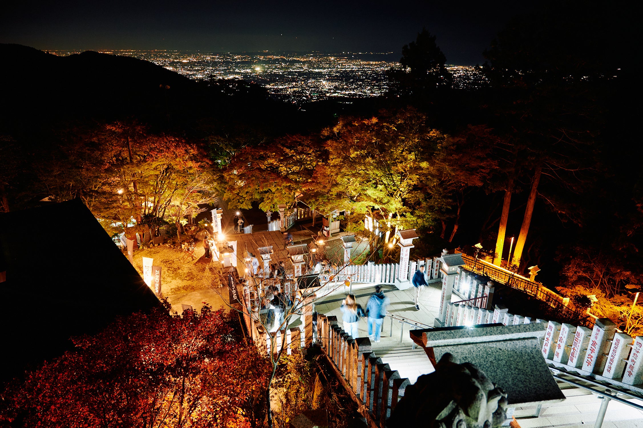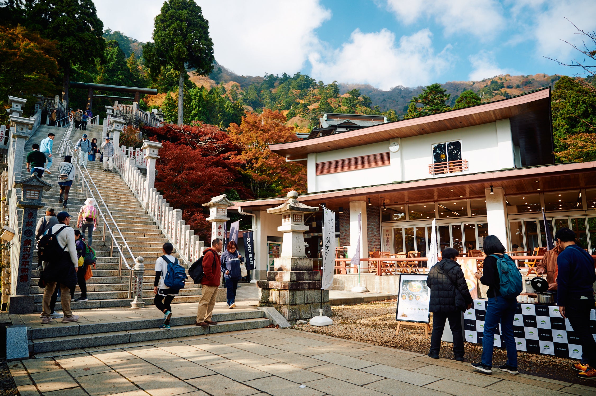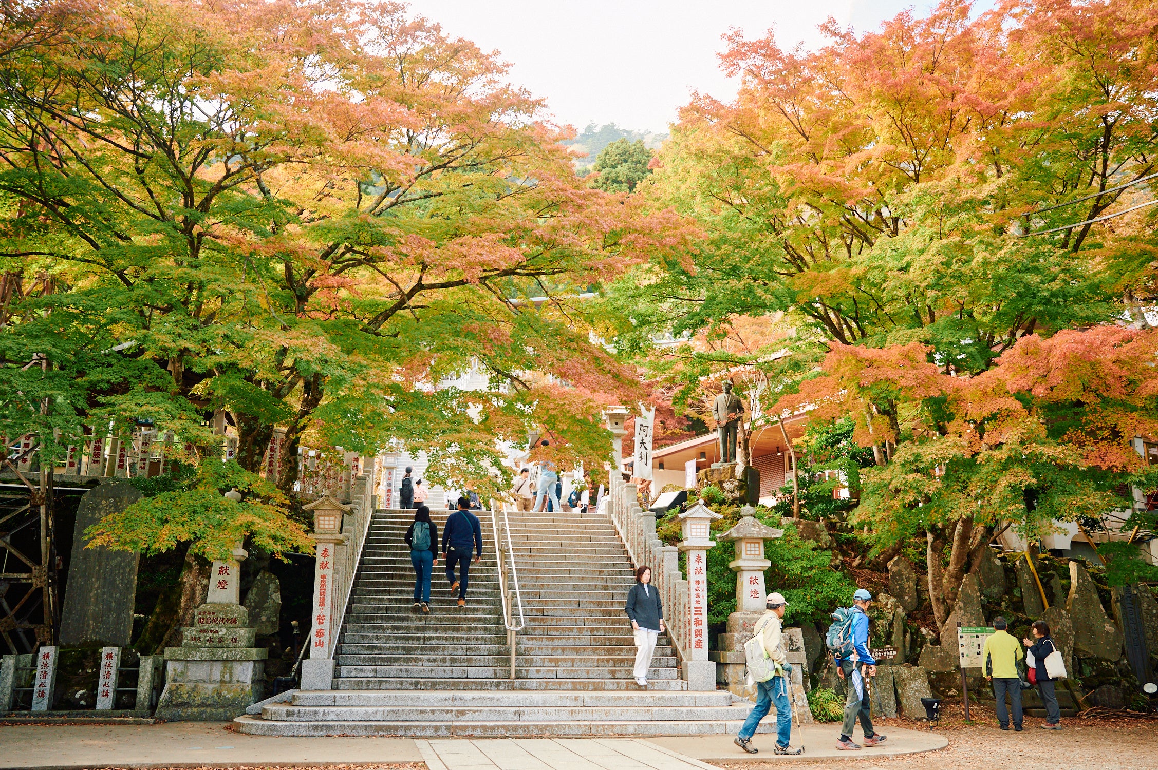 下社まではケーブルカーで麓から6分ほどです。紅葉期間中、特に土日祝日はケーブルカーは大変混雑します。お時間に余裕をもってお越しください。また、下社は標高700メートル近くのため、地上よりも大変冷え込みます。脱ぎ着できる暖かい格好がおすすめです。
