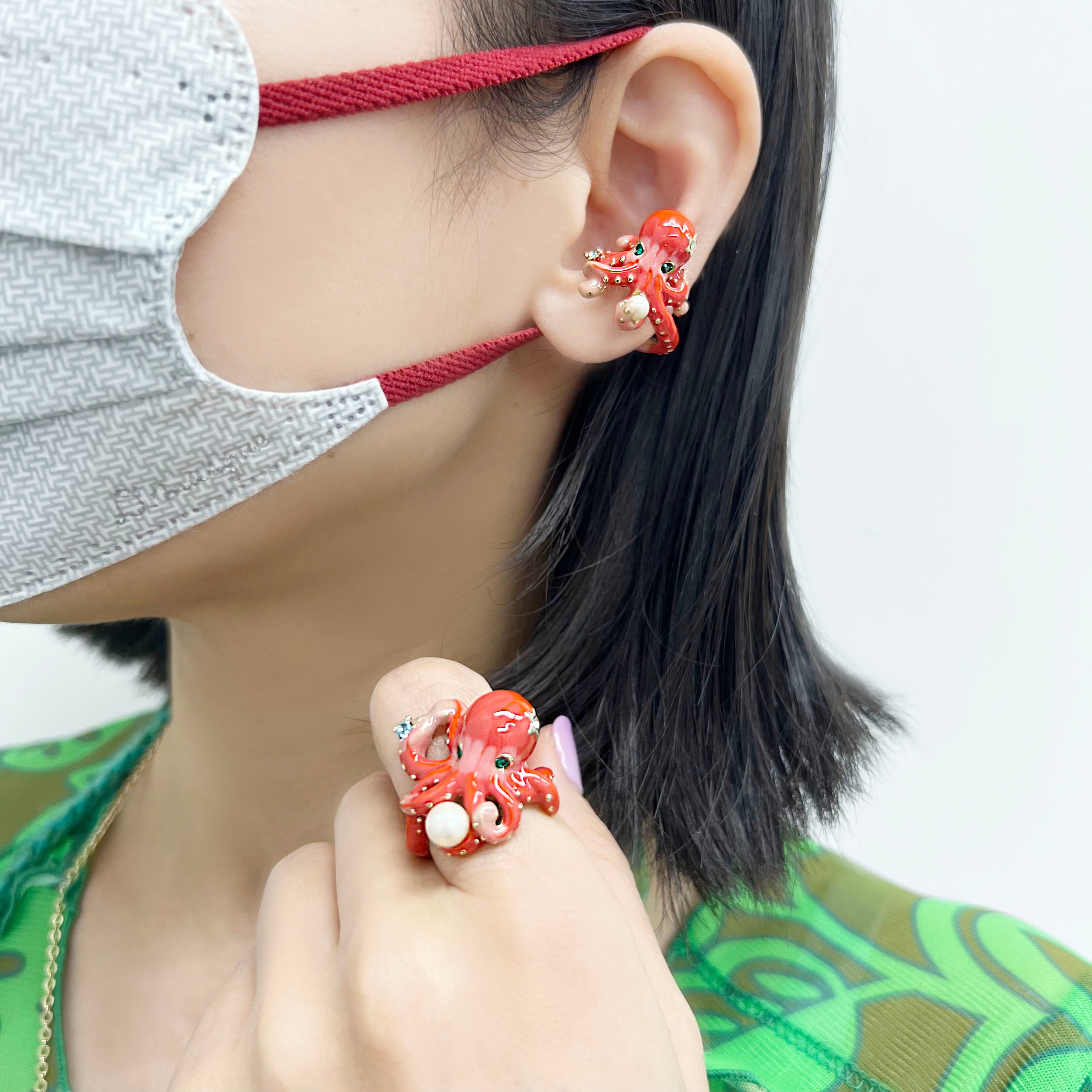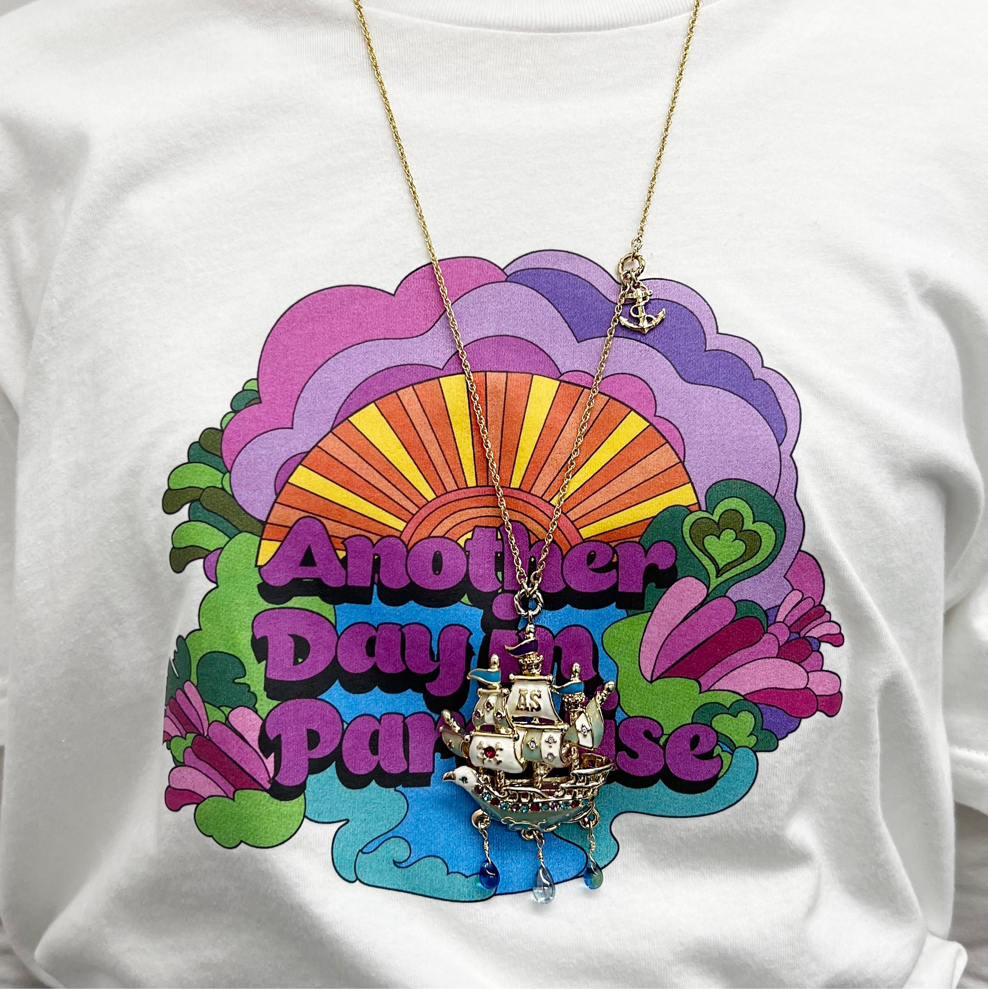 その他にもタコやくじらなど、海に住む生物をアナ スイらしくファンタジックに表現。海賊船がモチーフのネックレスの裏側は、船室や階段まで表現されており、どこから見ても楽しめるデザインになっています。