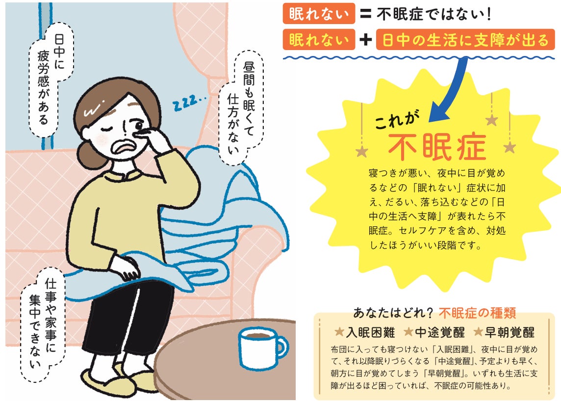 「めりぃさん」の読者アンケートでは、7割以上が「眠りに満足できていない」と回答。不眠症の自覚はないけれど眠れない気がする…など「なんとなく不眠」の人が多いよう。不眠に関する基礎知識や原因、眠りに問題があることで起きる病気や不調のリスクをご紹介します。