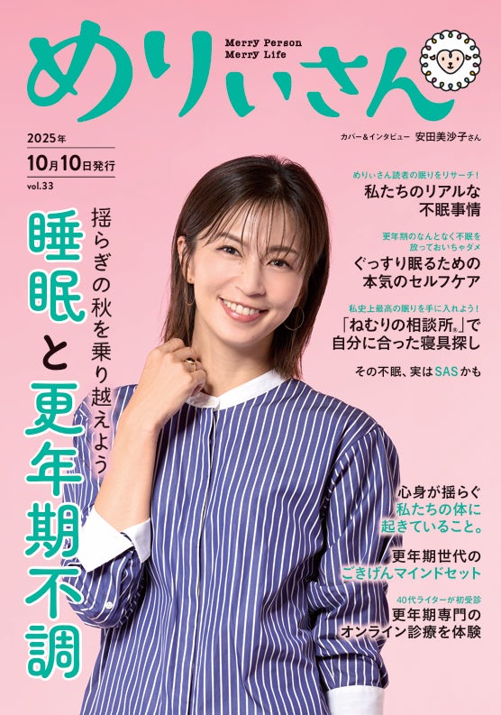 特集「睡眠と更年期不調」/表紙&インタビュー安田美沙子さん/情報誌『めりぃさん』vol.33 10月10日発刊