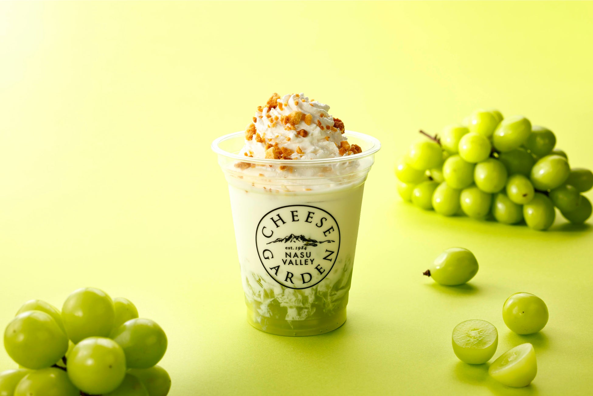 まるでレアチーズケーキを食べているかのような、すっきりとした味わいで人気のチーズドリンクに秋限定フレーバー『マスカットジュレラッテ』が再登場いたします。フロマージュを使用したフローズン仕立てのチーズドリンクにチーズガーデン工房手作りのマスカットジュレを加えました。マスカットの瑞々しさやジューシーさをそのまま閉じ込めたマスカットジュレを混ぜて飲むことでジュレが細かくなり、食感の変化やマスカットとチーズが絶妙なバランスで混ざり合う贅沢な味わいがお楽しみいただけます。