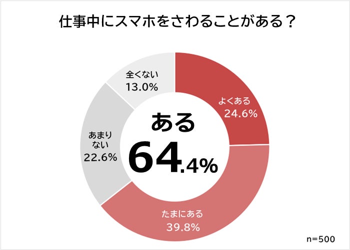 働く男女500人を対象にアンケートを行ったところ、「仕事中にスマホをさわる」と答えた人が64.4%にのぼりました。