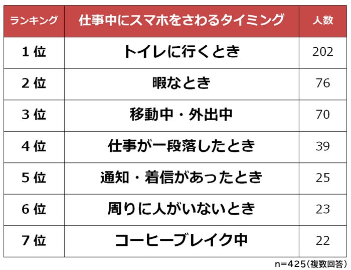 事務所にひとりきりになったり、同僚が離席したときにスマホを触っている人が多いとわかります。