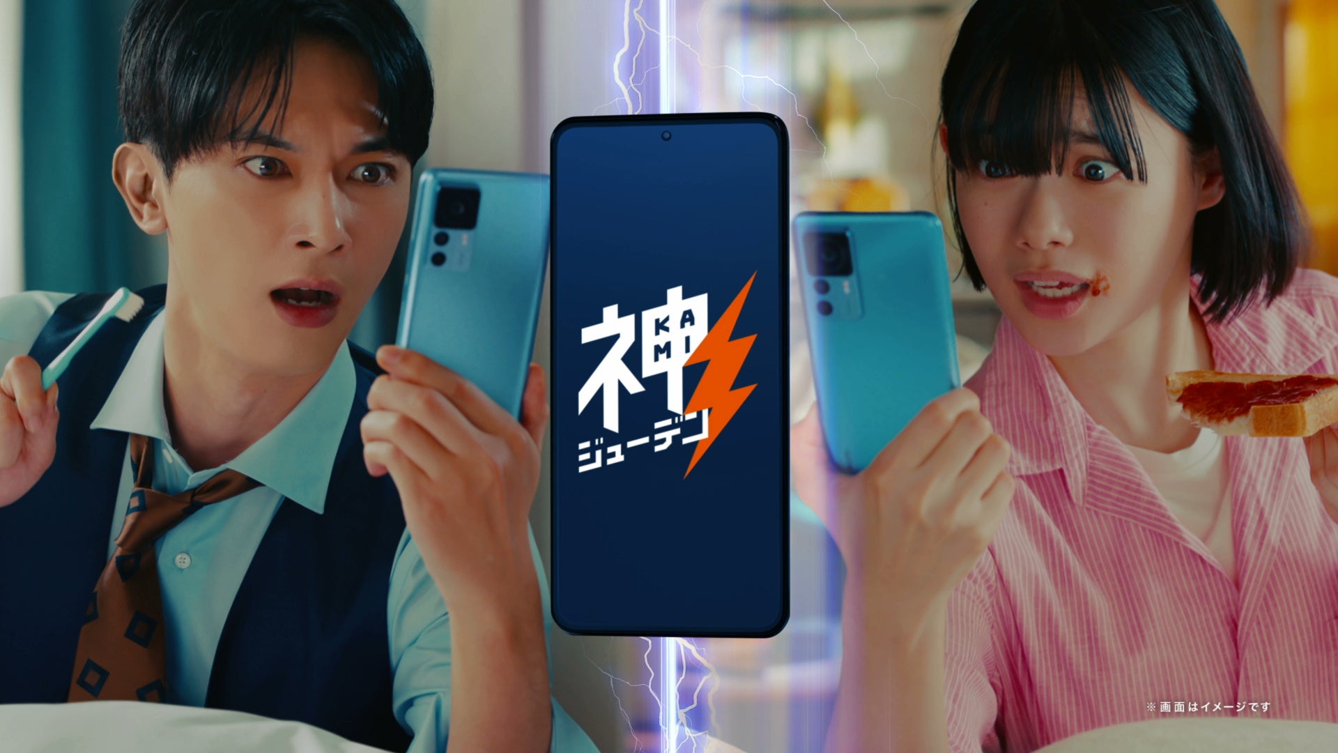 吉沢亮さん、杉咲花さんが19分で100%充電になる“神ジューデン”スマホに驚がく!一度聞いたらやみつきの“神ジューデン”ソングにも大注目!新テレビCM「神ジューデン登場」篇 12月14日(水)から放映