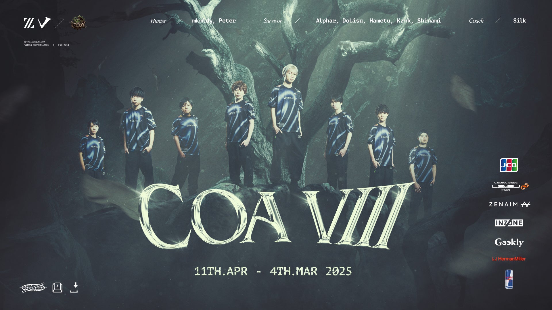 「ZETA DIVISION」第五人格部門は4月11日(金)から5月4日(日)にかけて行われる『COA VIII』ワールド決勝トーナメントに出場いたします。