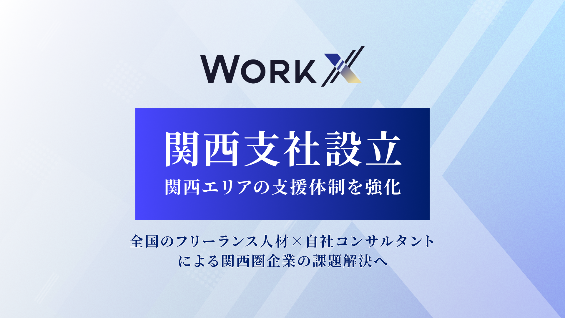 関西支社設立に伴い、WorkXが抱える8,000人以上のフリーランス人材の専門知と、自社コンサルタントの経営力・伴走力を掛け合わせた支援が可能となるため、関西圏企業の変革・成果にコミットしてまいります。