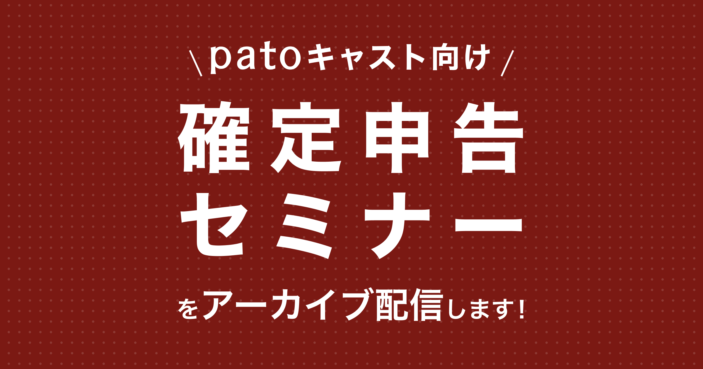 patoキャスト向け【税務申告オンラインセミナー】アーカイブ配信のお知らせ