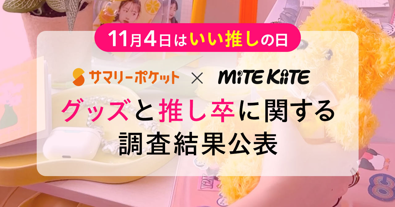 株式会社ソルトワークス(所在地:北海道札幌市、代表取締役:鶴尾康)が運営する、機能付きアクリルキーホルダー作成サービス「MiTE KiiTE(ミテキイテ)」は、株式会社サマリー(本社:東京都千代田区、代表取締役:日下部康介)が運営する、保管サービス「サマリーポケット」との共同で、11月4日「いい推しの日」に合わせ、「推し活に関するアンケート」を実施いたしました。