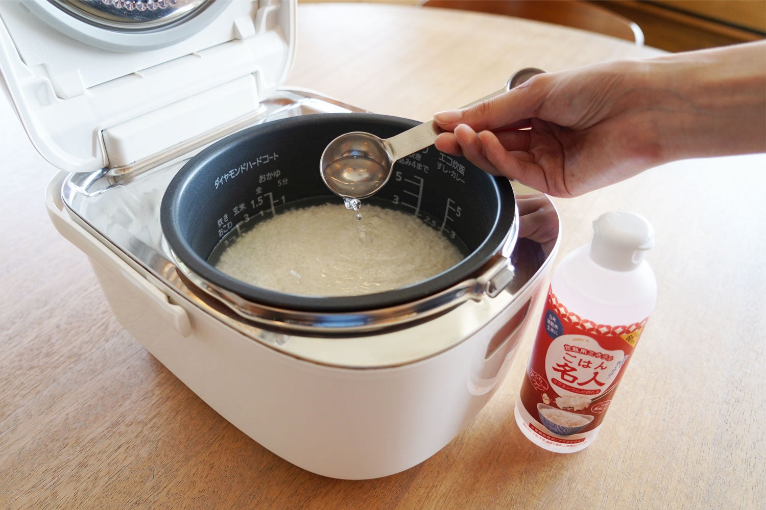炊飯時にお米1合あたり小さじ1杯(5ml)加えるだけで、甘み・粘り・つやが増した美味しいごはんが炊きあがります。また、白米、玄米、雑穀米など幅広くご使用いただけます。1本でたっぷり60合分。
