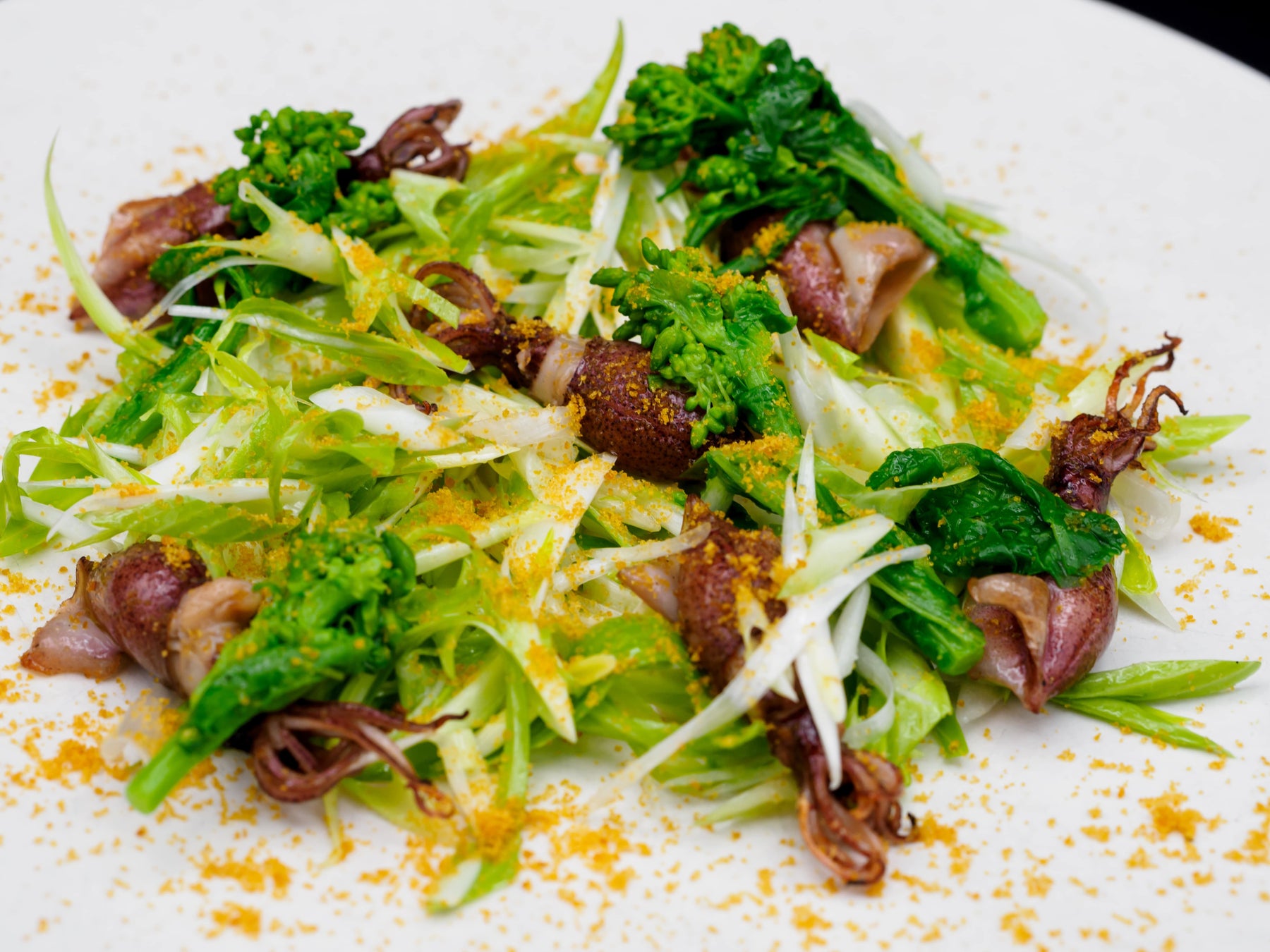 ホタルイカのプリッとした食感と、菜の花とうるいのシャキシャキ食感が堪らない一品です。