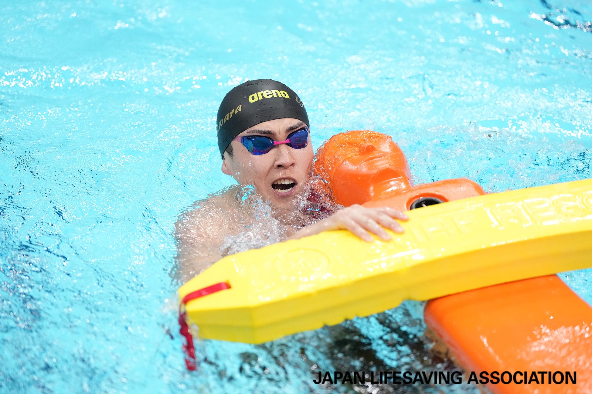 ライフセービングスポーツは、実際のレスキューを想定したものがベースとなっており、速さだけでなく正確さも競う重要な要素がある。溺れ役に扮した選手に向かってロープ(ライン)を投げる、ラインスロー競技は特徴的で、泳がないで助ける基本の一つ。本大会のラインスローでは、女子が湯河原LSC A(双木 梨央 , 上村 向日葵)13.56、男子が鴨川LSC B (佐藤 弘基 , 森野 郁也)11.62がそれぞれ優勝した。
